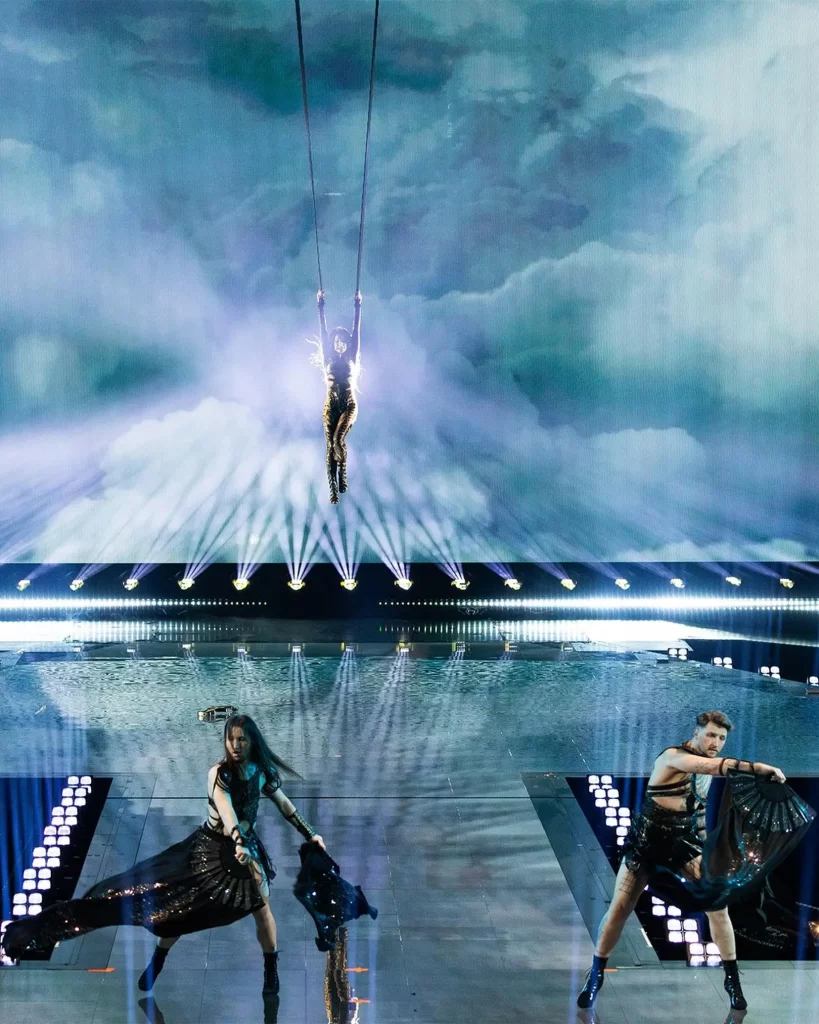 This year, Poland is showing up with one of the most visually arresting performances. After initial resistance from organisers, Justyna secured permission for a dramatic entrance that sees her descend from the ceiling on suspension lines.