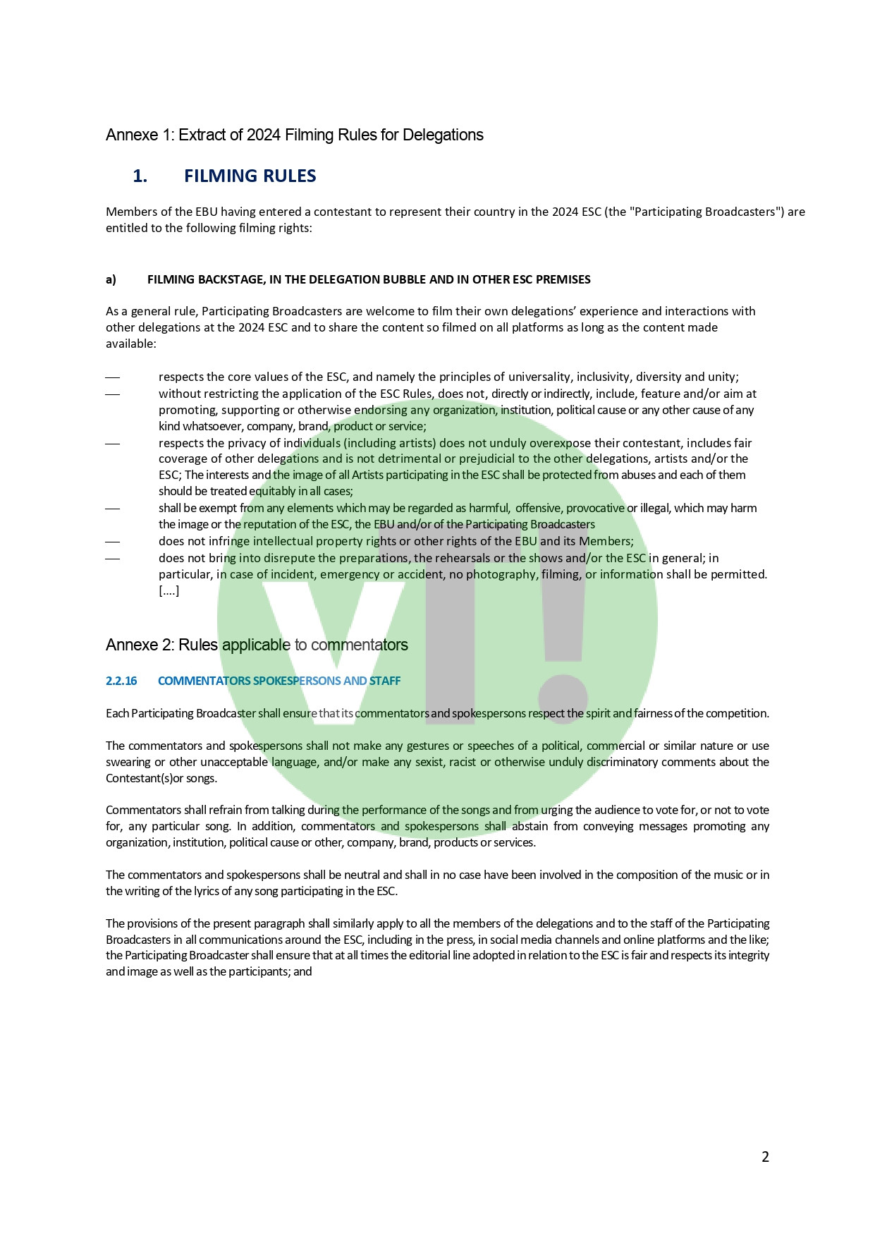 Annexes published alongside the warning letter detail exactly what is expected – broadcasters are welcome to film backstage and share content—provided it is respectful, avoids politicisation, and does not provoke or attack others. Commentators must not urge votes, promote any political causes, or make unacceptable remarks (sexist, racist, or otherwise discriminatory). Neutrality is paramount—both on air and in all official communications.