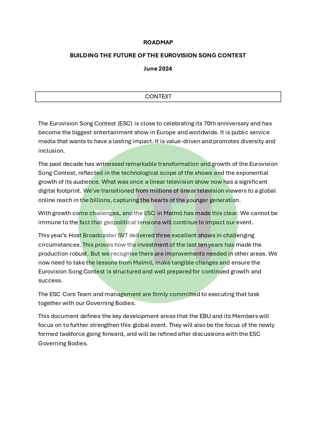 Based on 53 interviews with key staff, the Reference Group, and almost every head of delegation, her report became the basis for a new Eurovision Roadmap, circulated to all broadcasters.