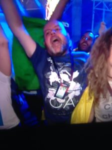 Blink and you’ll have missed me, dear reader, but there I was on the international tellybox for your delight during your actual Eurovision Sing Contest! Life goal achieved. I popped up giving my best “enthusiastic whoopsie boy in the audience number 6724” towards the end of Belarus, which is a little unfortunate seeing as I’d missed them out of my qualifiers predictions yesterday, but what’a a fan boy if not fickle’ eh? OK , it’s not quite a Schlagerboy in a Stockholm taxi, but now that I’m an international performer you’ll need to pop all correspondence through my agent, obvs.